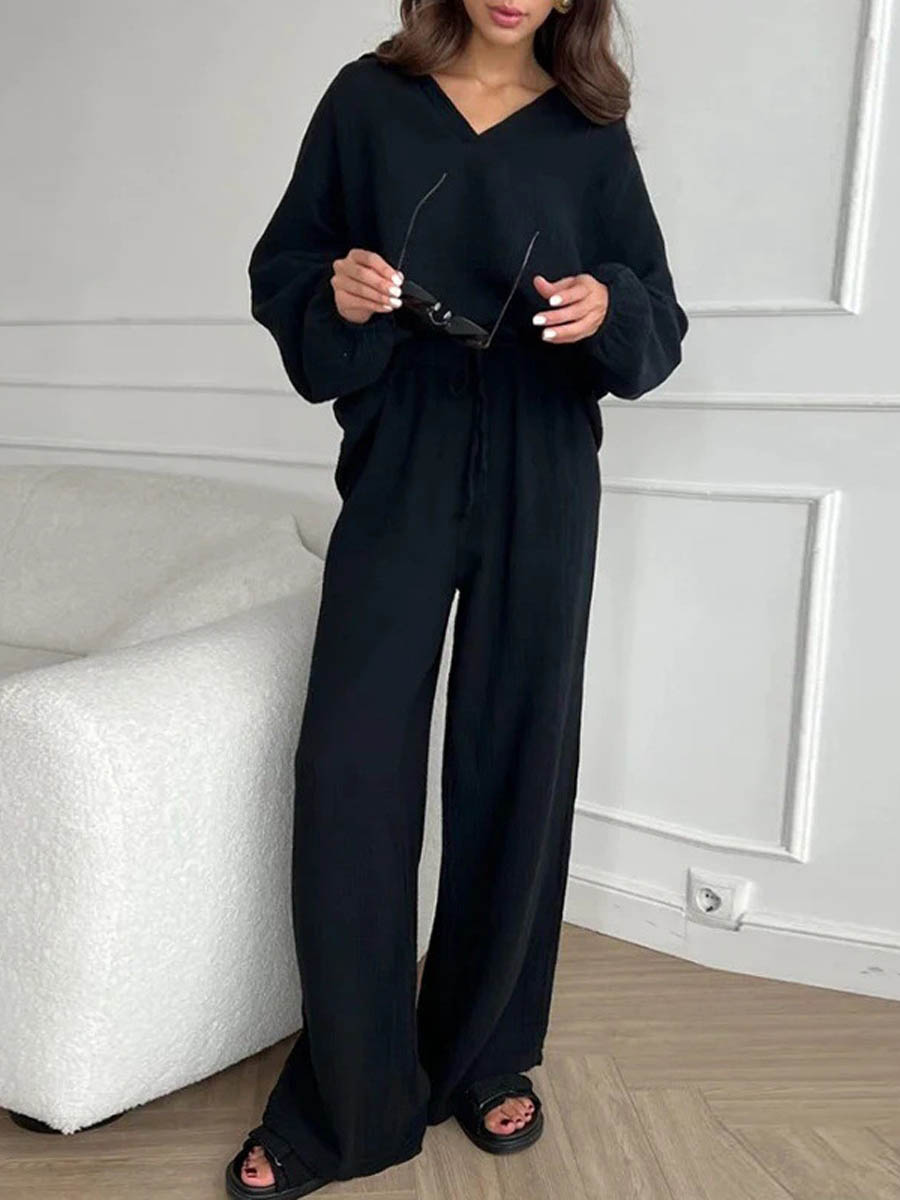 The Classic Cotton Set embodies the beauty of minimalist elegance and modern comfort. With a soft, textured fabric, a long-sleeve top, and wide trousers, this set combines practicality and sophistication. The loose fit ensures ease and movement – ideal for brunches, travel, or relaxed afternoons in style.